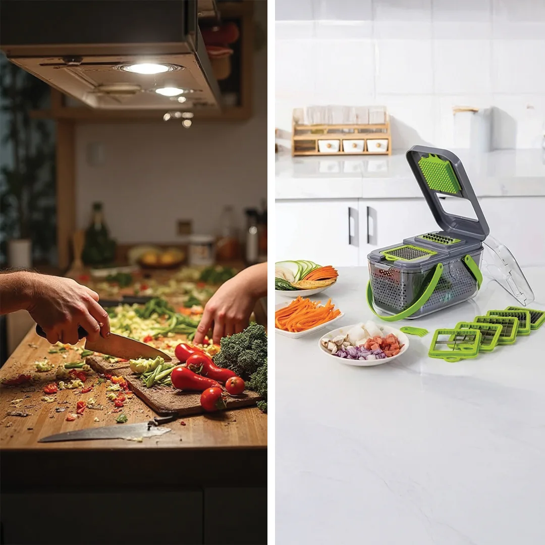آلة تقطيع الخضر الذكية 22 فـ 1 – السرعة، النظافة، والأمان فالكوزينة!