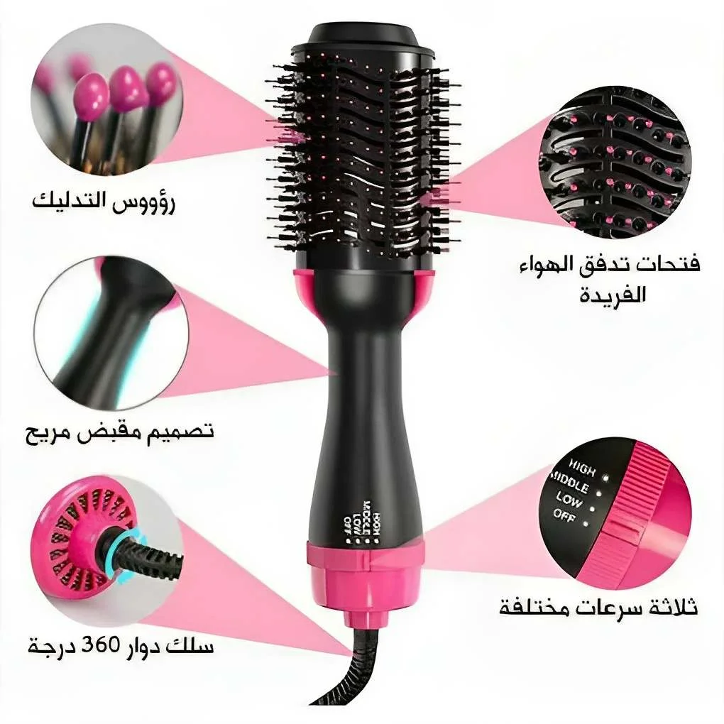 فرشاة الهواء الساخن تجعل فرد الشعر وتمويجه وتكثيفه وتدليك فروة الرأس أمرًا سهلاً.