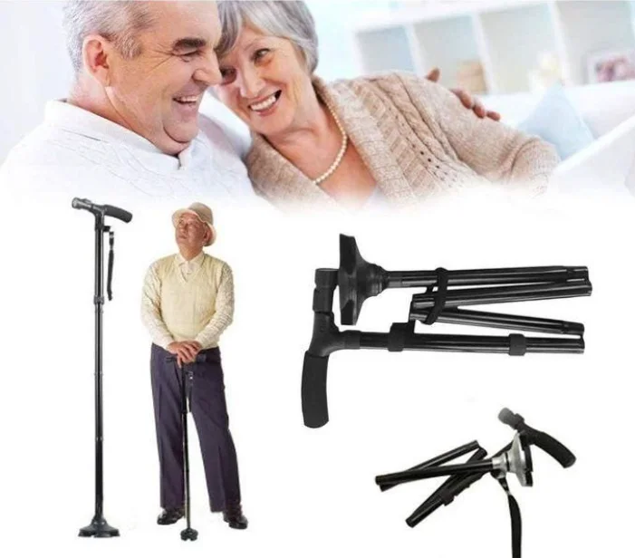 قابل للطي في ثوانٍ، بينما معظم العكاكيز التقليدية ثابتة وغير قابلة للطي.