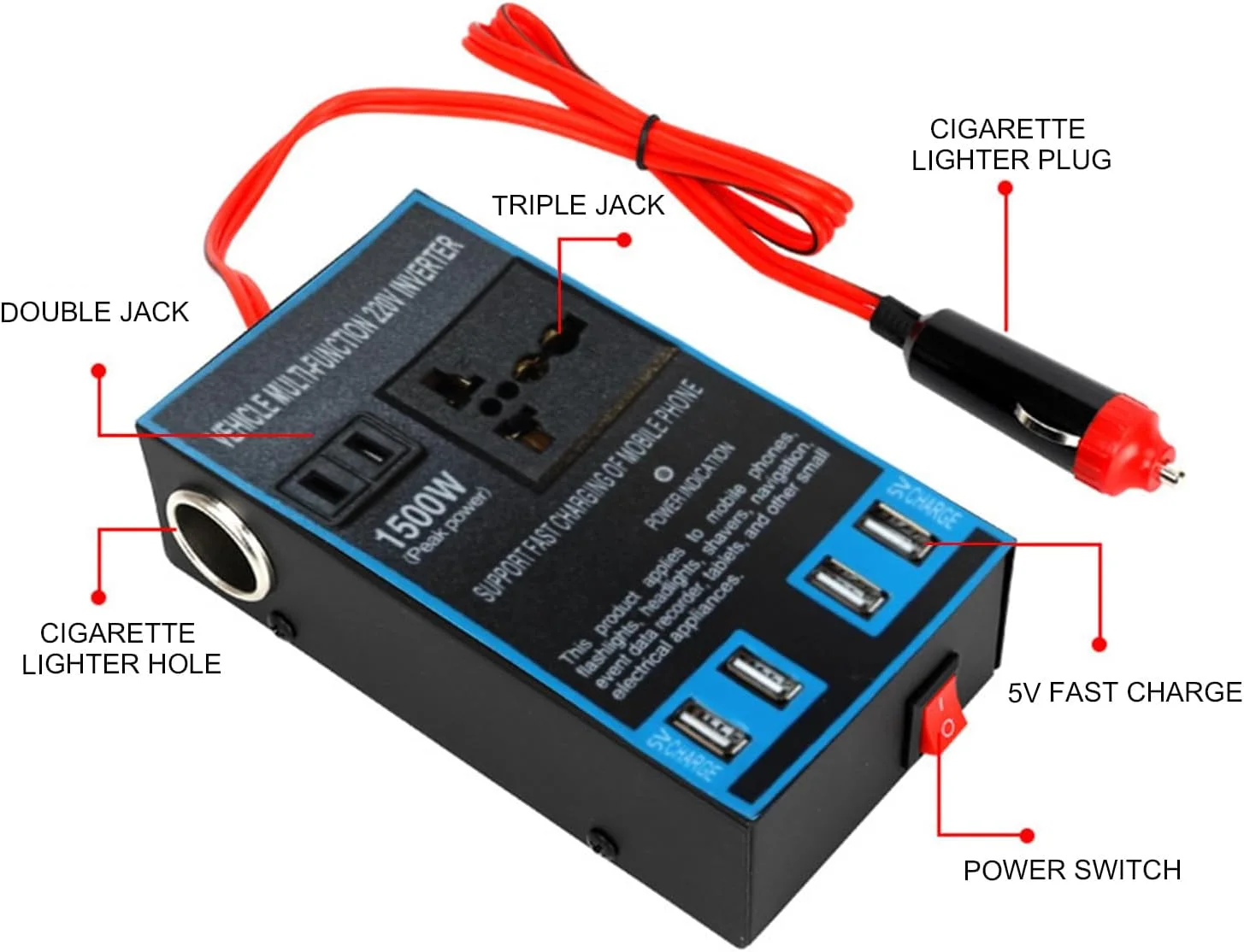Onduleur ديال السيارة 1500W، كتقدر تدير التالي: